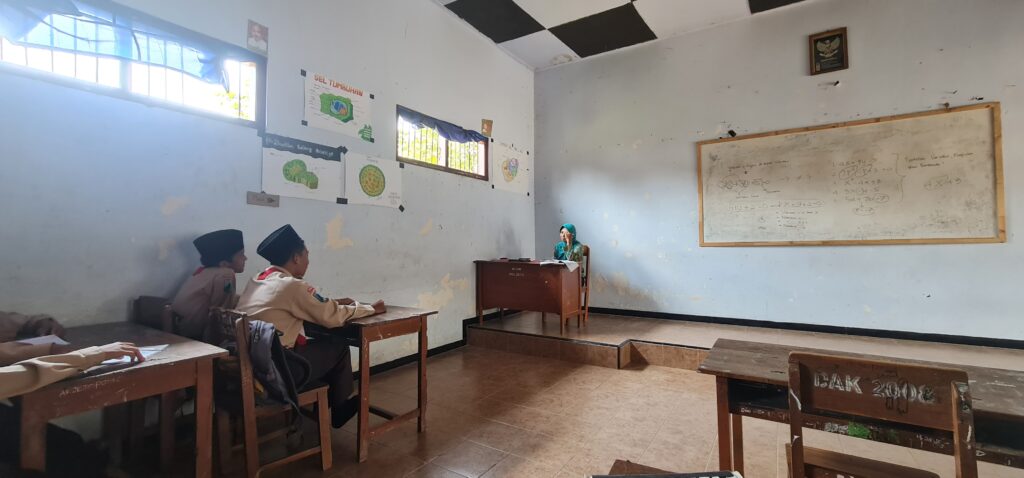 Pada kelas pertama waktunya untuk mata pelajaran Ilmu Pengetahuan Sosial, yang dibimbing oleh Bu Dwi.