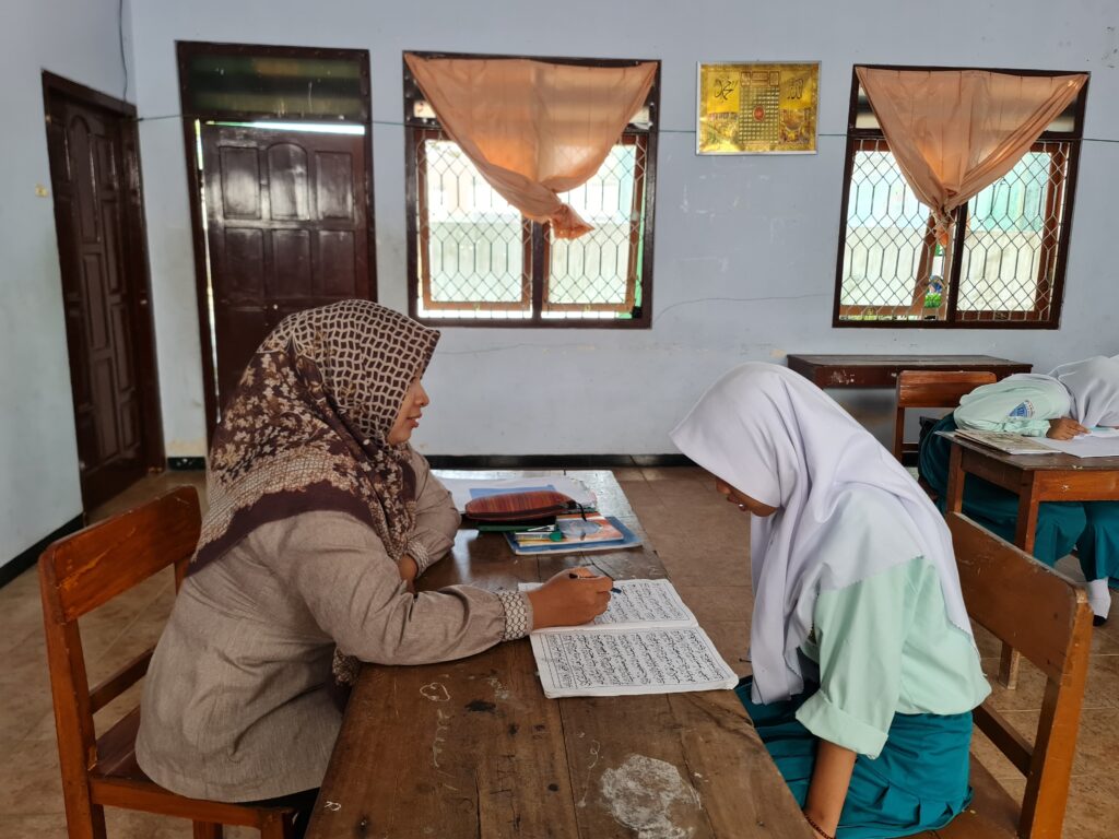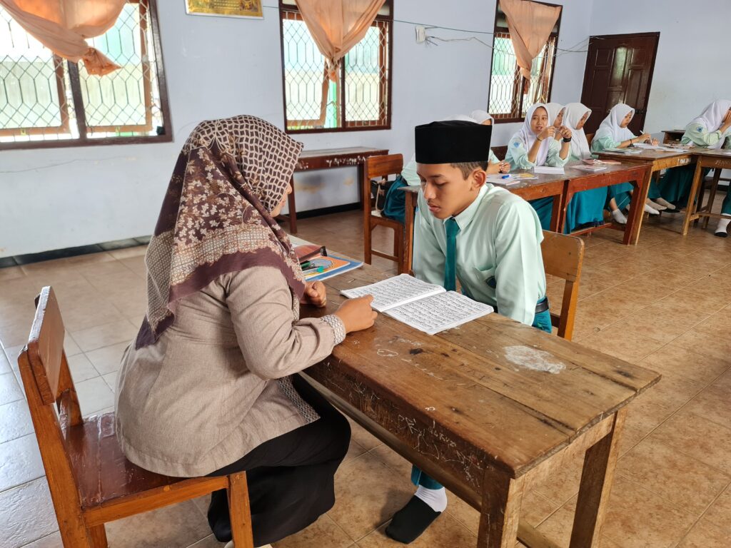 Kegiatan pertama yang kami lakukan adalah kami diminta untuk membaca ayat dalam Al Qur’an dan menyebutkan hukum bacaan yang ada pada ayat tersebut.