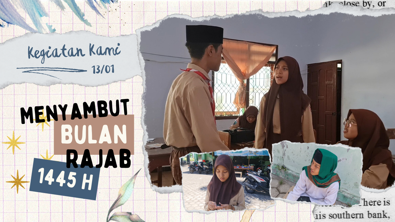 Kegiatan yang kami lakukan pada hari ini adalah membuat sebuah film pendek untuk menyambut Bulan Rajab. Beberapa dari kami merencanakan pembuatan film pendek tersebut. Setelah merencanakannya kita menyiapkan properti yang akan dipakai untuk syuting. Kami mulai membuat film tersebut dengan penuh semangat. Setelah membuat film pendek kami membuat twibbon menyambut Bulan Rajab.